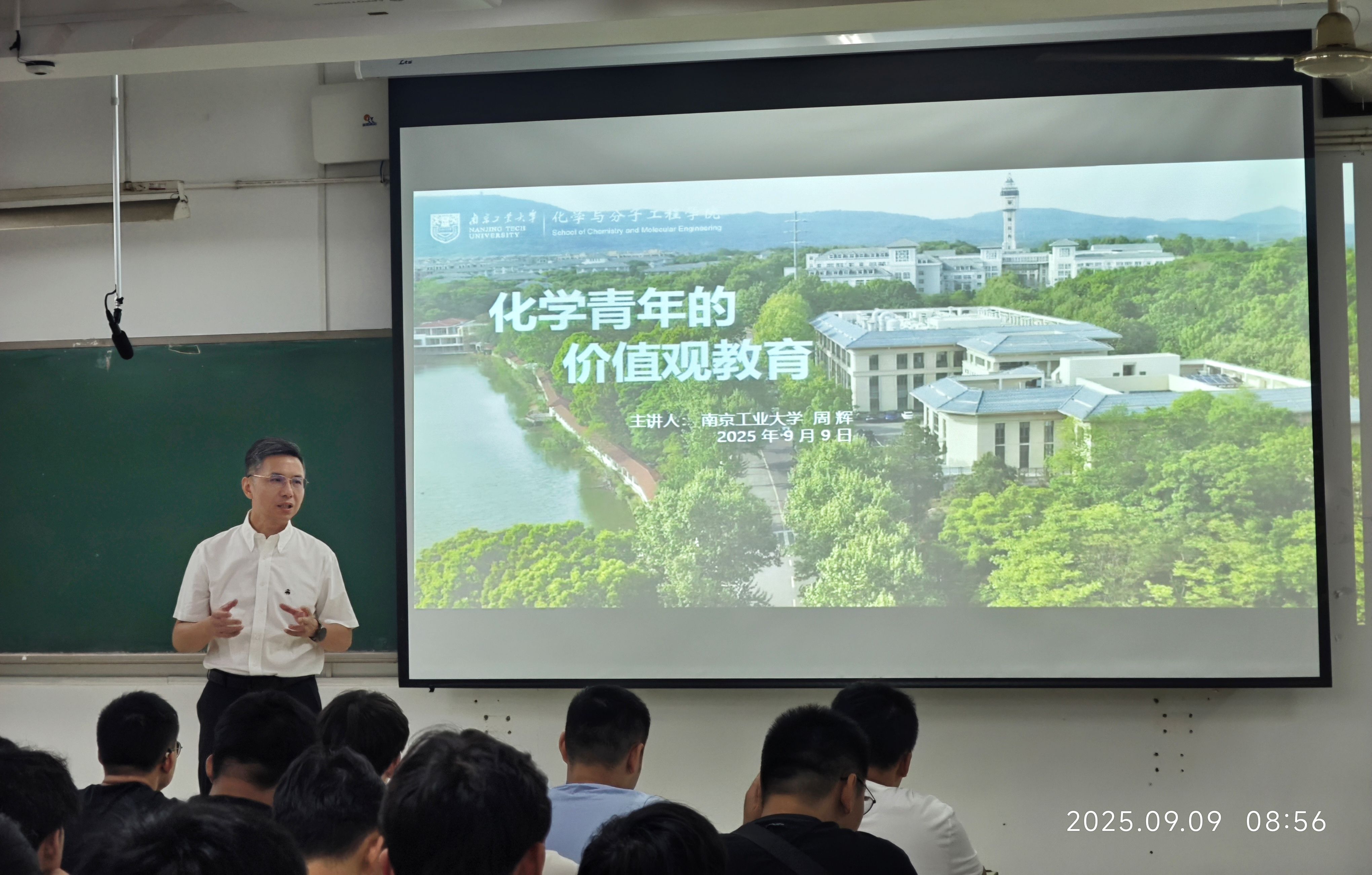9月9日上午,周辉书记以“化学青年的价值观教育”为主题,从汲取“九三阅兵”中的伟大抗战精神到拔尖创新人才的培养,周辉书记从专业定位、育人目标、价值引领、创新教育、底线红线教育五个方面展开,强调化学青年的价值观教育是专业发展的精神内核,人才培养的根本导向,对筑牢理想信念、锚定报国方向至关重要。他勉励新生“把论文写在祖国大地上,让‘分子’为强国事业发光”。