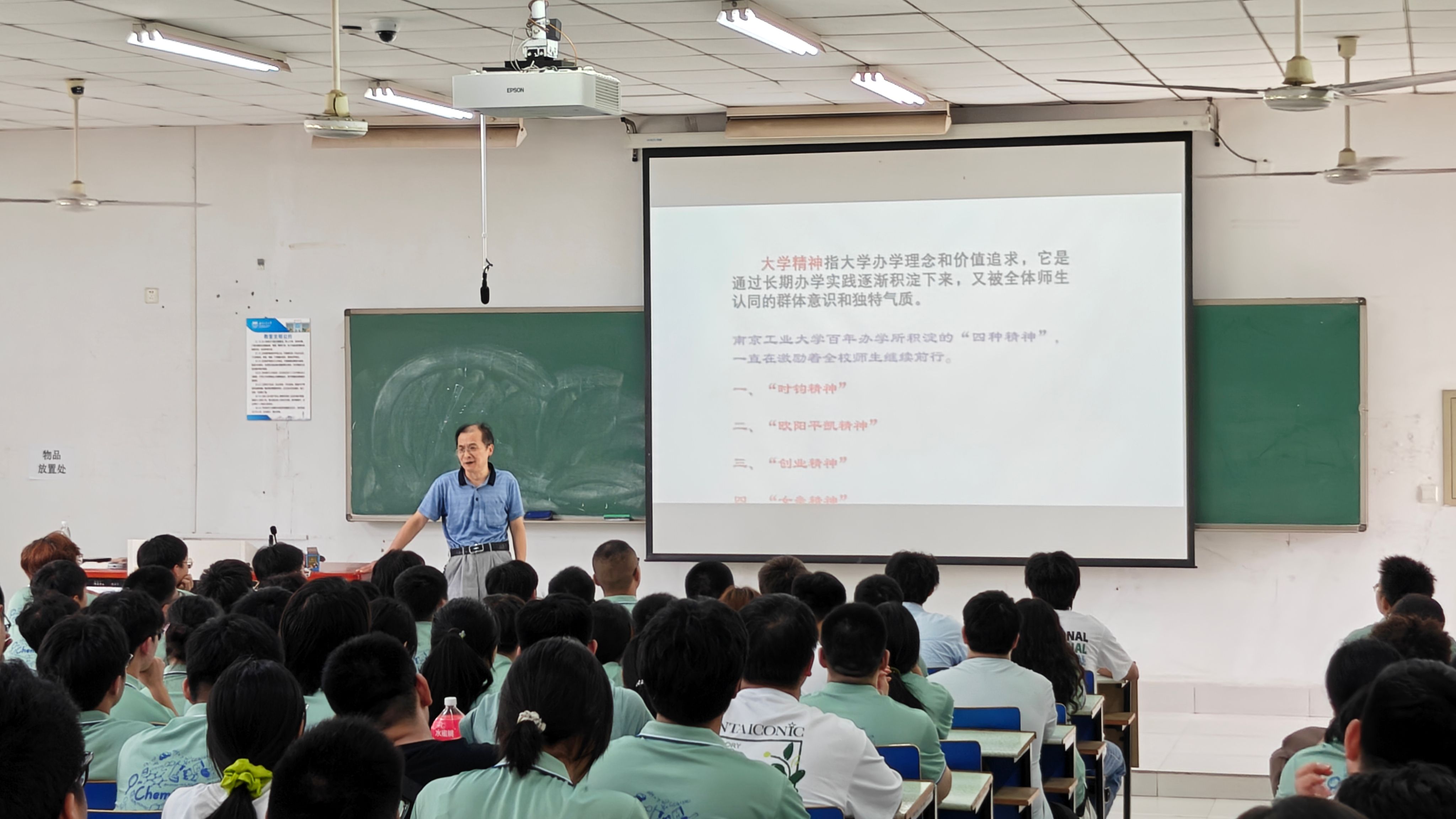 9月8日下午,学院邀请艺术设计学院原党委书记陈建华研究员,以“时钧精神”“欧阳平凯精神”“创业精神”“南工大女垒精神”为主线,结合学校历史发展,科研攻关案例,带领新生感悟“明德、厚学、沉毅、笃行”的校训真谛。互动环节中,学生踊跃提问“如何在实验失败中践行奋斗精神”,氛围热烈。