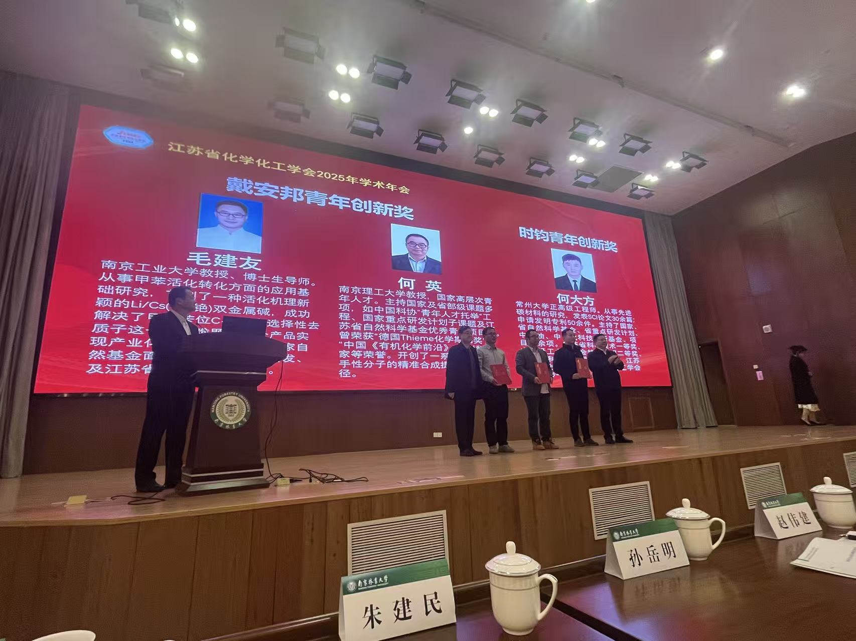 11月18日,在江苏省化学化工学会2025年度“戴安邦化学奖、时钧化工奖”颁奖典礼上,我院毛建友教授荣获“戴安邦化学青年创新奖”,成为我院继冯超教授后第二位获得此项荣誉的教师。