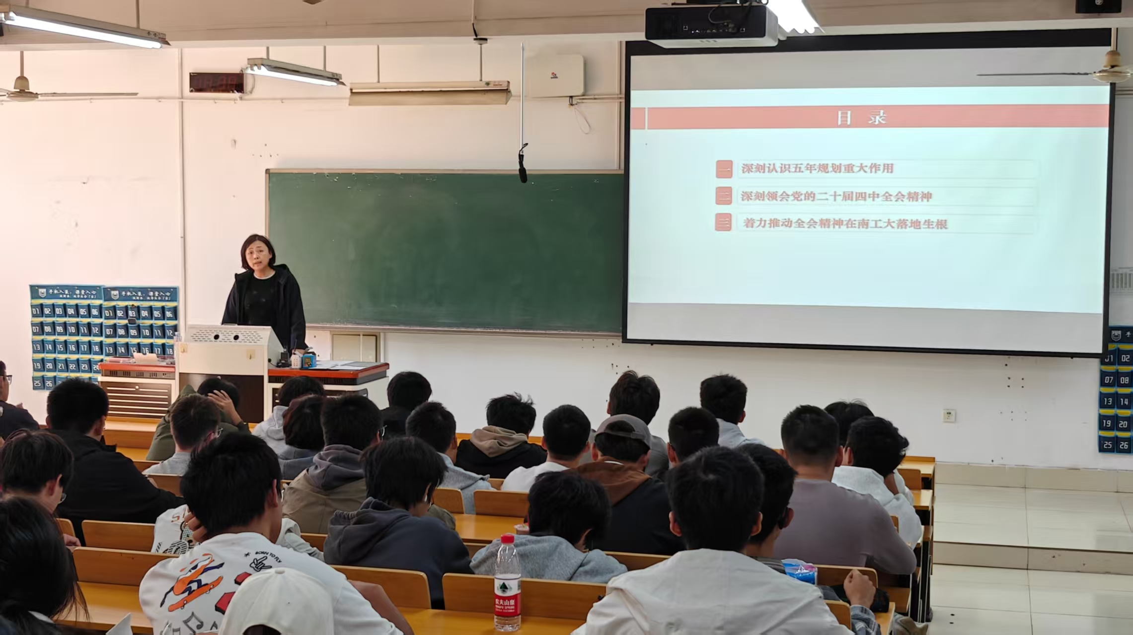 近日,校党委常委、副校长戴志晖在同和楼409教室,以《深入学习贯彻党的二十届四中全会精神,以中国式现代化全面推进中华民族伟大复兴》为题,为365上市公司2025级120余位学生讲授形势与政策课。365上市公司党委书记周辉主持宣讲会。