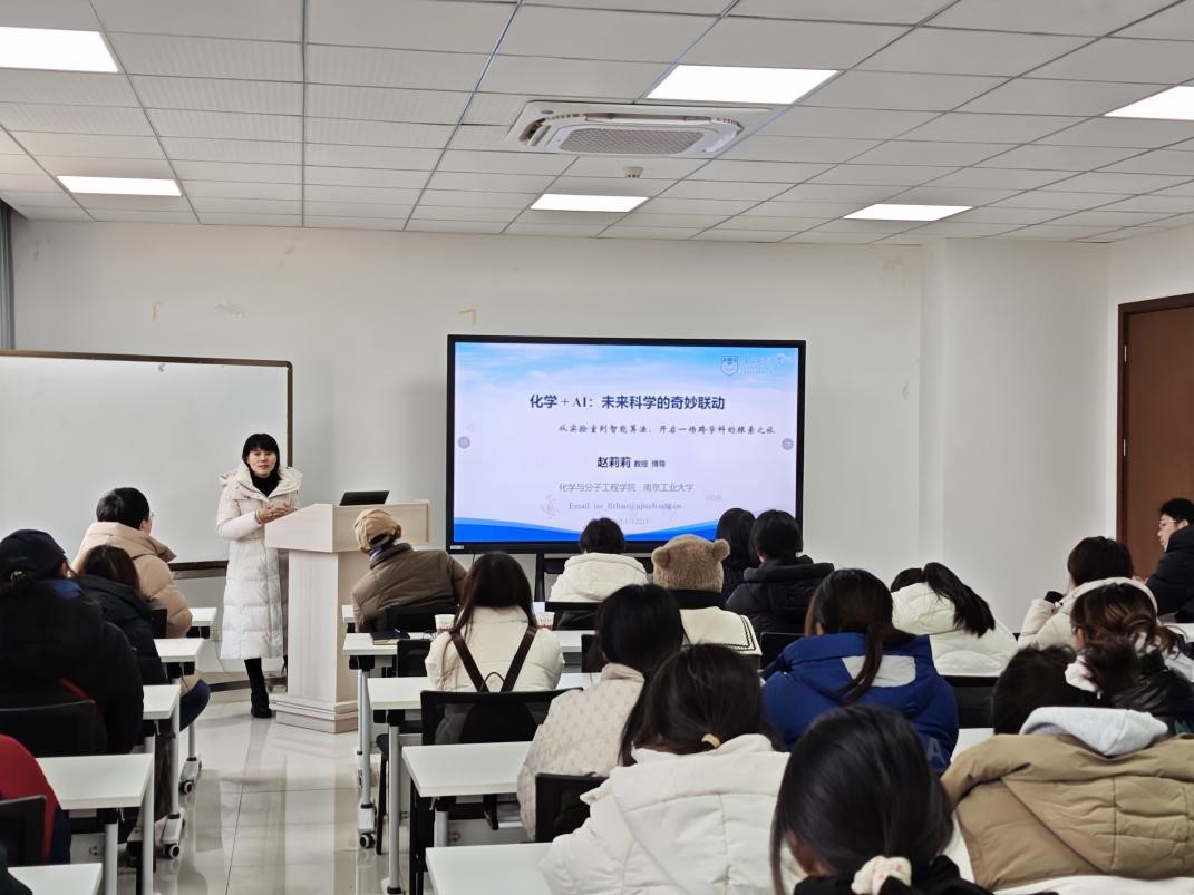 为进一步增进交流,我院化学系主任尹晓爽围绕化学英才班的培养方案、课程体系、实践平台等情况进行了专题介绍,分享了英才班在拔尖创新人才培养方面的经验做法。何广科主任带领来访师生参观了学院分析测试中心,详细介绍了各类先进设备的性能、应用及操作原理,演示部分设备运行流程,加深了同学们对现代化学研究的直观理解。赵莉莉教授作了题为《化学+AI:未来科学的奇妙联动》的专题讲座,生动阐释了人工智能技术与化学学科的深度融合路径,拓宽了来访同学们的科学视野,激发了大家对交叉学科研究的兴趣。