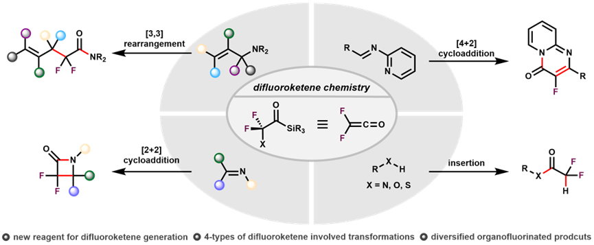由于氟原子具有小半径和高电负性的特殊性质,含氟化合物通常表现出与非氟代类似物不同的物理化学及生物特性,在功能材料、药物、农药及PET成像等领域发挥着重要作用。然而,天然含氟有机物极为稀少,其制备高度依赖人工合成,因此,开发新型含氟合成砌块,实现含氟结构的高效实用制备,不仅具有重要的理论研究价值,也展现出广阔的应用前景。