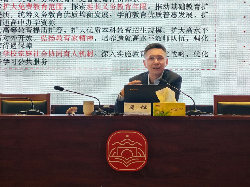 活动中,周辉书记作了题为《大中小学“就业思政”一体化实践评价体系建设》的讲座。讲座紧扣党中央关于教育改革的最新部署,系统阐释了全国两会重要精神以及“十五五”规划纲要对教育和就业工作的要求,围绕大中小学思政教育一体化的范式与实践,讲述了课程思政与思政课程的同向同行,阐明“创新”、“学科”与“科研”的重要性。立足不同学段学生的认知规律,循序渐进、螺旋上升地开展思想政治教育工作。此外,与现场教师分享“就业思政”的理论探索与实践评价,强调就业思政在价值观教育,人才培养中的重要作用。
