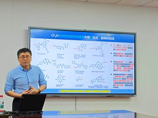 4月27日上午,学院特邀深圳大学医学部药学院刘国凯副教授做题为 “二氟甲基锍盐试剂的设计、合成与应用研究”的学术报告。报告由冯超教授主持,学院30余名师生代表参加了本次学术报告。