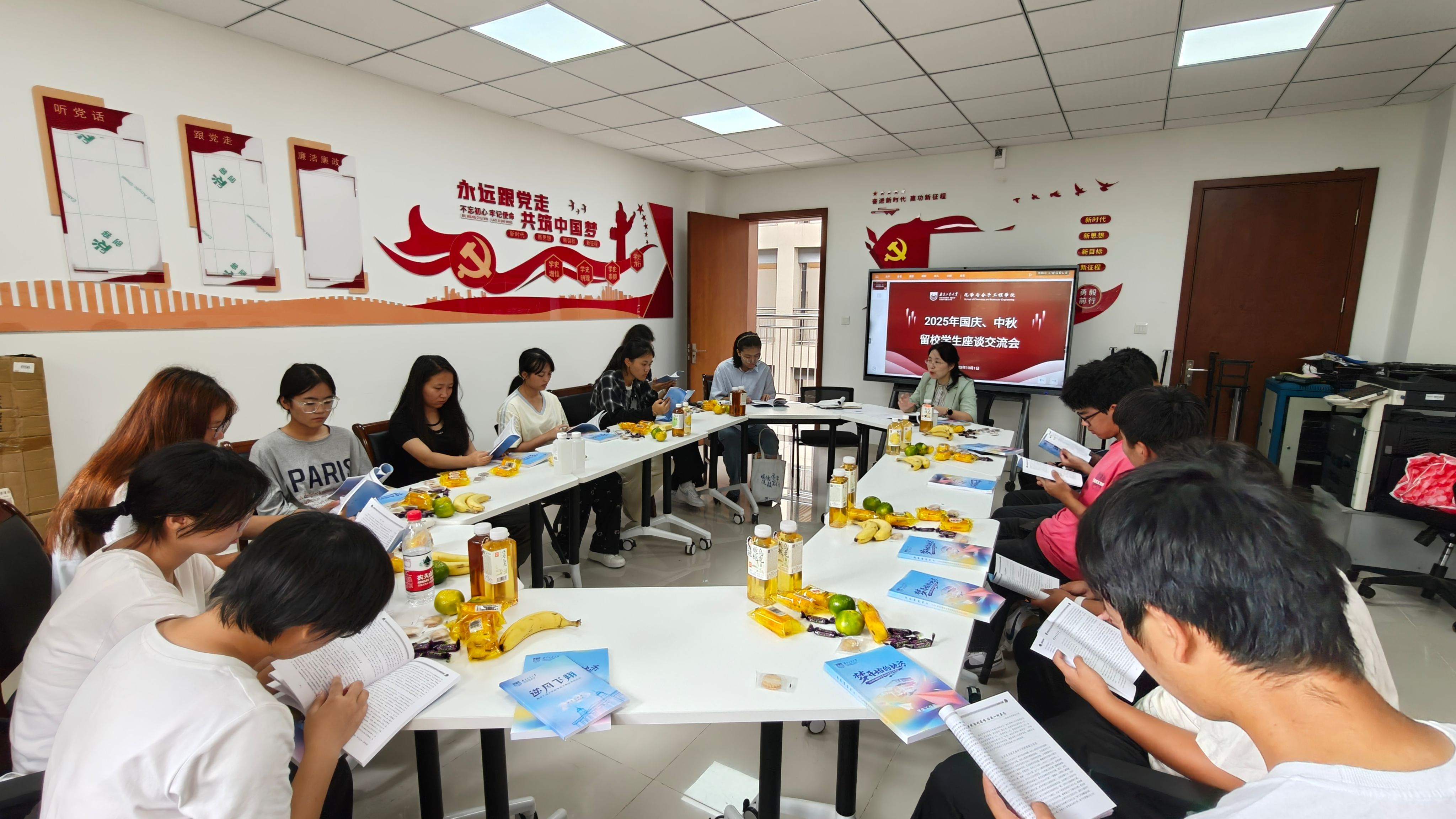 为进一步关怀假期留校学生,营造温馨、和谐的校园氛围,10月1日上午,365上市公司开展“情系学子·共庆双节”留校学生慰问活动。学院党委副书记王丽娟、辅导员戴坤与部分25级留校学生代表进行了亲切座谈,并为同学们送上节日祝福及中秋月饼。
