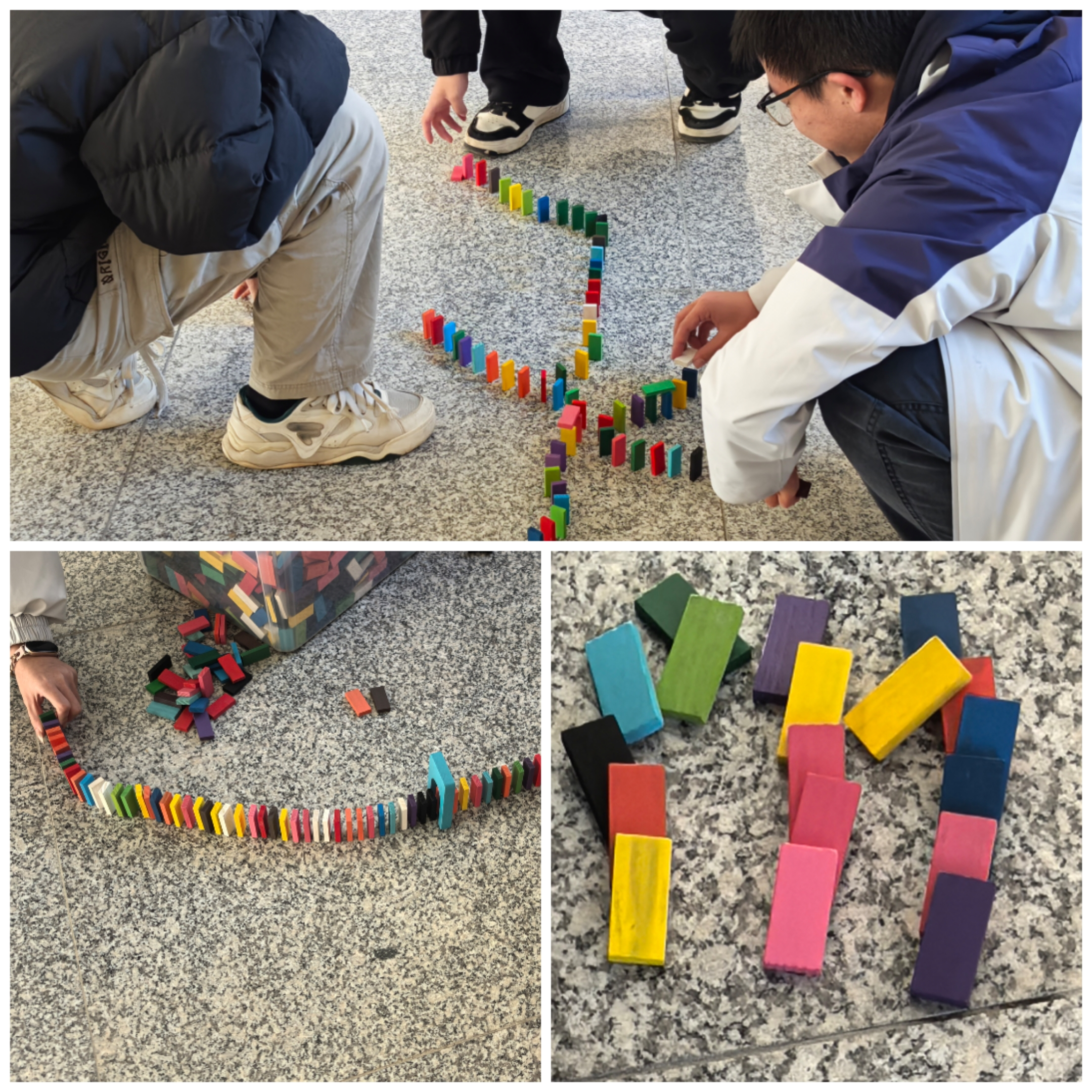 此次活动以趣味实践的方式,让同学们直观理解“多米诺效应”的内涵,不仅锻炼了大家的动手能力与协作意识,更引导大家意识到正向情绪的强大力量,学会在日常校园生活中主动传递善意、包容与乐观。本次活动通过将抽象的情绪管理理念转化为具象的实践体验,让同学们在游戏中释放压力、收获成长。