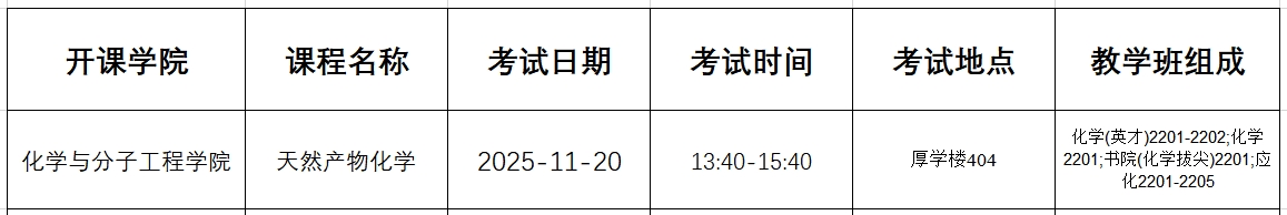 2025-2026(1)《天然产物化学》期末考试通知